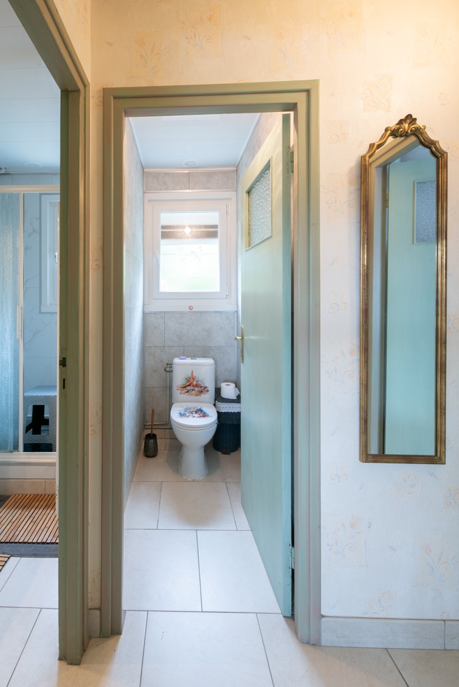 Equipée d'une douche, d'un lavabo & d'un sèche serviettes.